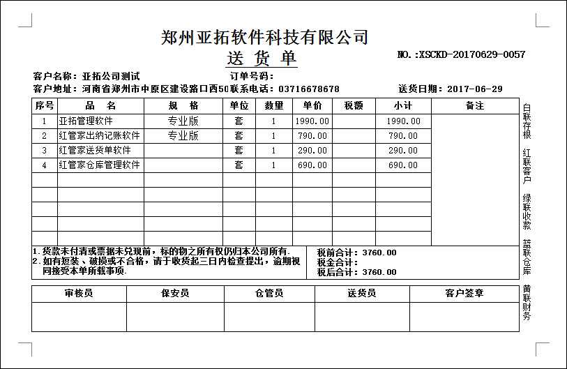 紅管家送貨單打印軟件是一款針對中小型企業(yè)開發(fā)的集送貨管理(發(fā)貨管理)、退貨管理(銷售退貨)、銷售收款(應收款管理)等功能為