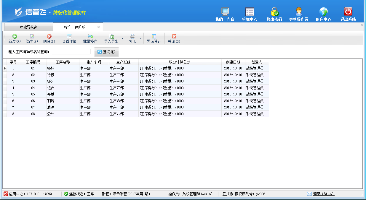 生產(chǎn)工序管理的典型功能截圖如下: