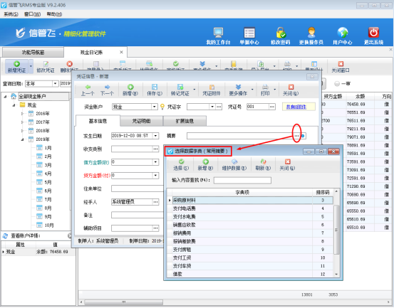 信管飛RMS標準版和專業版都包括出納模塊,可以登記出納日記賬憑證,出納憑證摘要默認可以手動隨意輸入。有些客戶對出納憑證摘要需要進行規范管理,登記憑證時摘要只能選擇不能隨意輸入該如何設置呢?本篇文章以信管飛RMS專業版為例介紹一下如何設置出納憑證摘要只能選擇不能隨意輸入。 在功能導航窗點擊“系統管理”——》“系統參數配置”——》“業務參數”可以進入到“業務參數”配置界面,在出納憑證相關參數內打勾啟用“出納憑證摘要只能選擇不能隨意輸入”參數,如下圖1所示。圖1 設置完成之后,在功能導航窗點