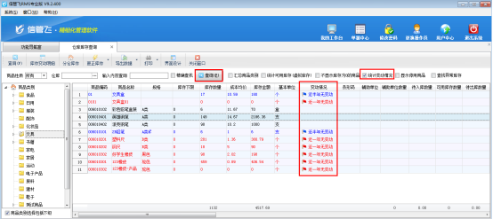 信管飛RMS、信管飛倉庫管理軟件可以對商品庫存進行統計,也支持統計商品近期的出庫情況,可以統計近半年、近一年無出庫的商品,方便對商品出庫情況進行管理。下面我們以信管飛RMS為例介紹下在進銷存管理軟件中如何統計近期無出庫的商品。 在功能導航窗中點擊“倉庫管理”—》“倉庫庫存查詢”,即可進入倉庫庫存查詢界面,勾選“統計變動情況”,再點擊“查詢”按鈕,可查詢近半年、近一年無出庫的商品記錄。如下圖所示:圖1圖2 其中,近半年無出庫的商品記錄以藍色顯示,近一年無出庫的商品記錄以紅色顯示。 &nb