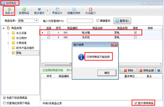 信管飛倉庫管理軟件、信管飛送貨單軟件、信管飛RMS都可以對商品信息進行管理,如果有些商品開過了單據,您以后不再使用該商品進行開單了,可以把該商品設置為停用狀態。已停用的商品無法被用于開單,選擇商品窗口可以隱藏已停用的商品。如何把不用的商品設置為停用呢?本篇文章以信管飛倉庫管理軟件為例詳細介紹一下如何把商品設置為停用狀態。    在功能導航窗點“基礎資料”—》“商品信息”即可進入“商品信息”界面,如圖1所示,以商品“電冰箱”為例,選擇商品后,點擊“修改”按鈕,勾選“已停用”,然后點擊“保存”按鈕,此商品被設置為停用狀態了。圖1
