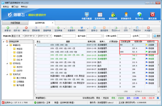 信管飛送貨單軟件、信管飛rms軟件等都支持開銷售單直接生成對應的應收款。對已開過的送貨(銷售)單會自動存在軟件中,可以在送貨單(銷售單)列表中進行查看。生成的應收款結銷操作可以到應收款管理中進行結銷,為了更清晰查看到當前單據是否已結算,軟件新增功能可以在送貨單(銷售單)列表界面顯示出當前結算狀態、已結算金額以及結算余額。     以“信管飛送貨單軟件”為例,示范下如何在送貨單列表界面顯示結算狀態。     首先需要啟用參數“收付款結算單審核后更新業務單據的結銷狀態”