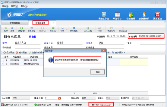 信管飛倉庫管理軟件、信管飛RMS、信管飛送貨單軟件等都支持開業務單據。軟件為了區分業務單據,支持開單自動生成單據編號。為了避免操作員登錄軟件修改單據編號,軟件支持在操作員權限中設置不允許操作員修改單據編號。 以信管飛倉庫管理軟件為例,示范下如何設置操作員不能修改單據編號的權限。在功能導航窗選擇“系統管理”—》“操作員及授權”進入操作員管理及授權界面。選擇普通操作員組的操作員“張亞”,點擊右側功能權限設置模塊,點擊“其他操作權限”,在下邊的權限中找到“可修改單據編號”,把勾選“√”符號取消(鼠標單擊即可取消)。點擊保存權限設