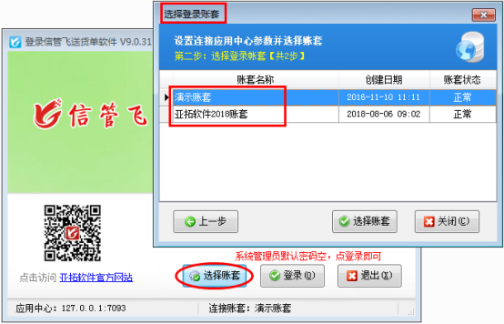 亞拓軟件旗下的信管飛RMS、信管飛倉庫管理軟件、信管飛送貨單軟件、信管飛出納記賬軟件、信管飛票據打印軟件等軟件程序安裝后會顯示兩個圖標,一個是應用中心程序(紅色圖標),一個是客戶端程序(藍色圖標)。這些軟件都含有賬套管理功能,在應用中心里面可以建立多個賬套,已使用的帳套如果不再繼續使用,可以停用帳套,停用帳套后,客戶端程序登錄時無法連接該帳套。我們以信管飛送貨單軟件為例演示一下如何停用帳套。    應用中心(紅色圖標)打開后會在電腦的右下角顯示,雙擊打開電腦右下角的應用中心圖標,點擊“帳套管理”,如圖1所示,帳套列表一共有3個