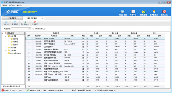 信管飛RMS和信管飛倉庫管理軟件都支持建立多個倉庫,可以統計商品在不同倉庫的庫存分布情況。支持按照商品名稱、商品類別等條件進行匯總。本篇文章信管飛倉庫管理軟件為例介紹一下如何查詢商品庫存分布情況。    在功能導航窗點“倉庫管理”—》“相關查詢統計”—》“倉庫分布查詢”,即可進入倉庫分布查詢界面,如下圖所示:    在倉庫分布查詢界面,點擊“統計”進行統計商品庫存分布情況。庫存分布查詢可以查看商品在不同倉庫的實時庫存情況,每個倉庫的庫存顯示為一列,方便對比查看。點擊“查看明細”可以查看該商品的庫存