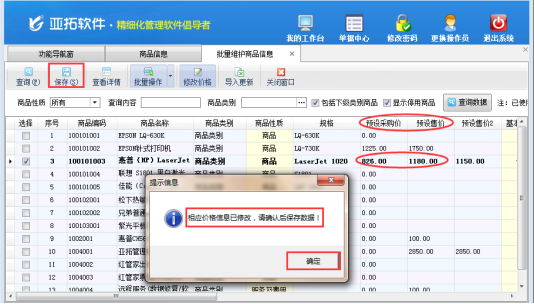亞拓管理軟件、信管飛送貨單軟件等支持新增商品信息時管理好商品的預設價格,如預設采購價和預設售價等。方便開單據的時候選擇商品自動調取價格信息。部分客戶商品價格可能存在后期上升或者下降的調整,本篇以亞拓管理軟件為例,介紹下如何批量修改商品的價格信息。 首先需要進入商品信息的批量維護界面,在功能導航窗選擇“基礎資料”—》“商品信息”,在商品信息界面,點擊工具欄中的更多操作,選擇更多操作下的“批量維護商品信息”,進入批量維護商品信息界面,如下圖1所示:圖1