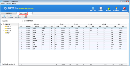 亞拓管理軟件(星光版、標(biāo)準(zhǔn)版、專業(yè)版)和紅管家倉庫管理軟件都可以對倉庫信息進行管理,都可以查詢商品庫存數(shù)量。軟件支持建立多個倉庫,可以統(tǒng)計商品在不同倉庫的庫存分布情況。支持按照商品名稱、商品類別等條件進行匯總。本篇文章以亞拓管理軟件專業(yè)版為例介紹一下如何查詢商品庫存分布情況。 在功能導(dǎo)航窗點“倉庫管理”—》“相關(guān)查詢統(tǒng)計”—》“倉庫分布查詢”,即可進入倉庫分布查詢界面,如下圖所示: 在倉庫分布查詢界面,點擊“統(tǒng)計”進行統(tǒng)計商品庫存分布情況。庫存分布查詢可以查看商品在不同倉庫的實時庫存情