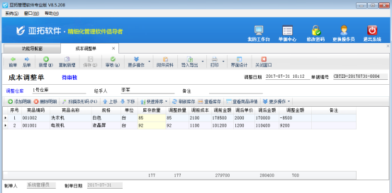 亞拓管理軟件(進銷存軟件)支持負(fù)庫存開單,如果商品不存在成本價會提示錄入成本價,實際工作中有可能會出現(xiàn)錄錯成本價的情況,導(dǎo)致最終在倉庫庫存查詢中發(fā)現(xiàn)商品成本價異常。另外,在業(yè)務(wù)經(jīng)營中有時也需要進行優(yōu)惠性調(diào)價(節(jié)日或促銷活動調(diào)價)、季節(jié)性商品調(diào)價、政策性商品調(diào)價等,這些業(yè)務(wù)都可以通過“成本調(diào)整單”進行價格調(diào)整。亞拓管理軟件標(biāo)準(zhǔn)版和專業(yè)版都包括成本調(diào)整單,我們以亞拓管理軟件專業(yè)版為例介紹一下成本調(diào)整單的使用方法。 在功能導(dǎo)航窗,點“倉庫管理”—》“成本調(diào)整單”,即可進入“成本調(diào)整單”界面,如下圖所示: