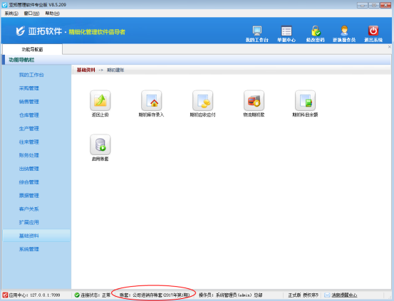 亞拓管理軟件(星光版、標(biāo)準(zhǔn)版、專業(yè)版)是進銷存一體化軟件,軟件支持同時管理多個帳套。新增的空帳套和初始化后的帳套,帳套狀態(tài)都是“未啟用”,如圖1所示。帳套未啟用時是無法錄入業(yè)務(wù)單據(jù)的,只能錄入基礎(chǔ)資料和期初數(shù)據(jù)。在完成期初數(shù)據(jù)的錄入后,就可以啟用賬套(即開賬)。我們以亞拓管理軟件專業(yè)版為例介紹一下如何啟用帳套。圖1 在功能導(dǎo)航窗,點“基礎(chǔ)資料”—》“期初建賬”—》“啟用帳套”,系統(tǒng)打開“啟用帳套”窗口,如圖2所示。圖2 啟用賬期:是指準(zhǔn)備從哪個月份開始使用軟件(例如:假設(shè)當(dāng)前月份為20