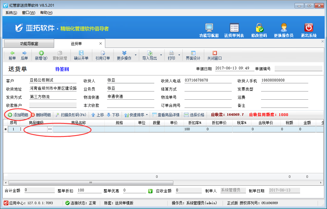 亞拓管理軟件、紅管家倉庫管理軟件、紅管家送貨單軟件等為了方便用戶可以快速開單,在單據中點擊“添加明細”按鈕默認都是彈出商品選擇窗口(如下圖一所示),可以快速選擇所需商品信息,但是部分用戶在開單時需要直接錄入新商品,而不是在商品信息庫中進行選擇,對于此種情況,軟件支持設置在單據中點擊“添加明細”按鈕時不彈出商品選擇窗口,本篇文章我們以紅管家送貨單軟件為例來詳細介紹一下如何設置在單據中點擊“添加明細”按鈕時不彈出商品選擇窗口?圖一  點擊“添加明細”按鈕時彈出商品選擇窗口    在功能導航窗點擊“系統管理”—》“系統參數