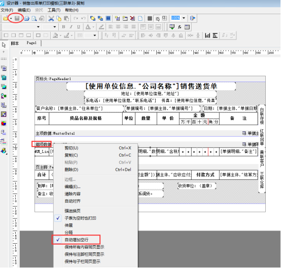 亞拓軟件旗下的紅管家送貨單軟件、亞拓管理軟件、紅管家倉庫管理軟件,都支持開單打印單據,軟件中內置了十幾種打印模板供客戶選擇使用,也支持自定義設計打印模板,軟件內置打印模板設置自動增加空行,根據客戶需要模板不顯示空白行,我們以送貨單軟件為例設置下打印模板不顯示空白行。     新開一個送貨單,輸入數據點擊“確認開單”后,點擊打印—》“打印格式設計”進入打印模板界面,選擇一個打印模板點擊打印預覽,預覽圖如下:     設置不顯示空白行,為了避免修改錯誤,可以在打印格式設