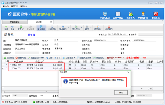 • 送貨單軟件內(nèi)如何設(shè)置同一商品不可錄入多行?