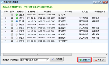 紅管家送貨單打印軟件是一款針對中小型企業開發的集送貨管理(發貨管理)、退貨管理(銷售退貨)、銷售收款(應收款管理)等功能為一體的送貨管理及打印軟件(送貨單打印軟件、發貨單打印軟件、出貨單打印軟件、收據打印軟件、貨單票據打印軟件)。 紅管家送貨單軟件開單后可以直接打印單據,軟件還支持批量打印送貨單,如果您每天開單數量較多,為了節省寶貴時間提高工作效率,您可以使用批量打印功能。下面我們介紹一下在紅管家送貨單軟件中批量打印送貨單的具體的操作步驟。 在功能導航窗點“業務處理”—》“送貨單列表”