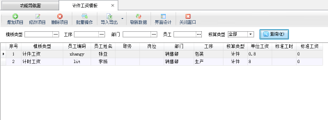 亞拓管理軟件標準版、專業版(擴展模塊)及紅管家出納記賬軟件內都支持計件工資管理功能,可以對公司內部根據計件進行核算工資的員工工資進行管理,本篇文章以紅管家出納記賬軟件為例詳細介紹一下如何設置計件工資模版? 在功能導航窗點擊“綜合管理”—》“計件工資模板”即可進入“計件工資模板”界面,如下圖所示: 增加項目:點擊工具欄中的“增加項目”按鈕,可以打開“新增計件工資項目”窗口,核算類型分為“計件”或“計時”,用戶根據核算類型維護下每天工時、單位工資等相關數據項后點擊“保存”按鈕即可保存工資模
