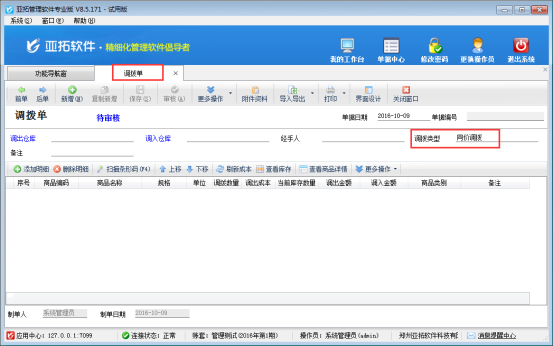 對(duì)于存在多個(gè)倉(cāng)庫(kù)的企業(yè)來(lái)說(shuō),對(duì)不同倉(cāng)庫(kù)的商品直接進(jìn)行調(diào)撥,是一種很常見(jiàn)的業(yè)務(wù)。亞拓軟件下的進(jìn)銷(xiāo)存軟件——亞拓管理軟件和亞拓倉(cāng)庫(kù)管理軟件都支持分倉(cāng)庫(kù)管理商品,其中亞拓管理軟件標(biāo)準(zhǔn)版和專(zhuān)業(yè)版、亞拓倉(cāng)庫(kù)管理軟件都支持倉(cāng)庫(kù)調(diào)撥功能,可以方便的進(jìn)行倉(cāng)庫(kù)之間的貨品轉(zhuǎn)移。 調(diào)撥分為同價(jià)調(diào)撥和變價(jià)調(diào)撥兩種,有客戶(hù)是一直采用一種調(diào)撥方式,軟件支持設(shè)置調(diào)撥單默認(rèn)調(diào)撥方式。 以亞拓管理軟件為例,首先設(shè)置參數(shù),在導(dǎo)航窗“系統(tǒng)管理”->系統(tǒng)參數(shù)配置->選擇“業(yè)務(wù)參數(shù)”的“調(diào)撥單默認(rèn)調(diào)撥方式”,后邊的