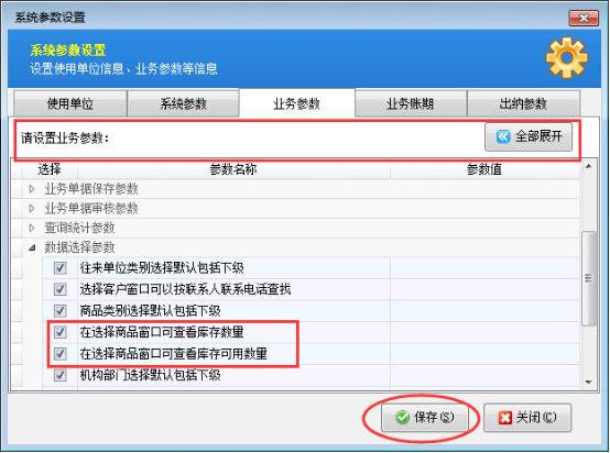 亞拓軟件下的亞拓管理軟件和亞拓倉庫管理軟件都包含“庫存管理”功能模塊,為了更清晰地看到商品的庫存信息,在軟件的“業務參數”中添加了在選擇商品窗口可查看到“商品庫存數量”及“商品可用庫存數量”的設置。     演示視頻觀看鏈接:信管飛RMS軟件如何設置選擇商品時可以查看到庫存數量?    在功能導航窗,點擊“系統參數配置”—》“業務參數”選擇“數據選擇參數”進行設置,(為了更快捷的設置業務參數,可以先把設置業務參數“全部折疊”,直接查找“數據選擇參數”項),勾選參數后記得保存,具體操作如圖