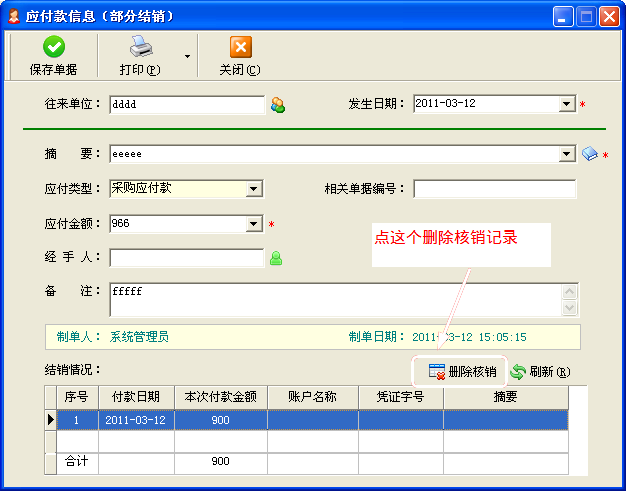 我公司的出納記賬軟件、進(jìn)銷存軟件、送貨單軟件等都有應(yīng)收款應(yīng)付款往來帳管理功能,支持增加預(yù)付款、應(yīng)退款,并可以將周期性的應(yīng)收應(yīng)付款進(jìn)行批量增加(比如房租、車貸、固定收益等),在核銷往來帳時(shí),預(yù)付款、應(yīng)退款可以沖抵應(yīng)收應(yīng)付。核銷記錄可以轉(zhuǎn)記日記賬憑證。 有客戶在核銷往來帳時(shí),有時(shí)會(huì)出現(xiàn)誤核銷的情況,這個(gè)時(shí)候想刪除核銷記錄,或者想刪除往來帳(應(yīng)收款/應(yīng)付款記錄),這個(gè)時(shí)候系統(tǒng)會(huì)提示“已經(jīng)結(jié)銷的應(yīng)收款/應(yīng)付款記錄無法刪除”。 這個(gè)時(shí)候,你可以在應(yīng)收款管理或應(yīng)付款管理中,選擇相應(yīng)的記錄,點(diǎn)“修改應(yīng)收款”或者“修改應(yīng)付款”按鈕,在彈