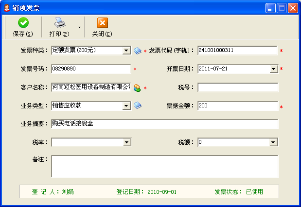 一、發(fā)票的登記銷項(xiàng)發(fā)票目前主要分為定額發(fā)票、增值稅發(fā)票、一般機(jī)打發(fā)票三種,公司會(huì)計(jì)人員在稅局購領(lǐng)后,需要在第一時(shí)間內(nèi),在《紅管家財(cái)務(wù)出納記賬系統(tǒng)》中進(jìn)行登記。主要登記信息包括:發(fā)票種類:定額、增值稅、一般發(fā)票(手開/機(jī)打)。發(fā)票字軌:即發(fā)票代碼頭,本批發(fā)票前綴相同的特定字符。起始號(hào)碼:數(shù)字,用于批量生成發(fā)票號(hào)碼。發(fā)票張數(shù)購買日期及購買人發(fā)票樣本附件 二、發(fā)票的申領(lǐng)(1)部門負(fù)責(zé)人和銷售經(jīng)理可根據(jù)項(xiàng)目要求,從公司紅管家財(cái)務(wù)記賬軟件中打印出開具發(fā)票的申請(qǐng)單,然后報(bào)公司財(cái)務(wù)室負(fù)責(zé)人簽字后,由專職會(huì)計(jì)負(fù)責(zé)開具正式發(fā)票(機(jī)打發(fā)票需要登錄地稅系統(tǒng)打印)。(2)會(huì)計(jì)在紅管家的發(fā)票管理中在對(duì)應(yīng)的發(fā)票