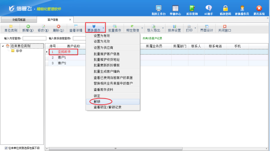 您是否遇到過這樣的尷尬場景?正要開單時,選擇客戶卻彈出“應收款超出信用額度,已被鎖定”的提示,訂單流程瞬間卡殼……別擔心!我們為您量身打造了“三步解鎖法”,讓開單流程重回順暢軌道! 核心解鎖路徑,三步直達 1 精準定位:進入系統功能導航窗,點擊【基礎資料】-【客戶信息】,在客戶列表中找到被鎖定的目標客戶; 2 一鍵解鎖:選中該客戶后,點擊工具欄【更多操作】下的【解鎖】按鈕,系統將立即對客戶進行解除鎖定;