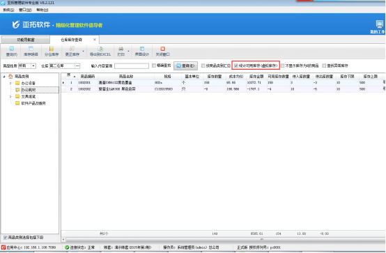 亞拓管理軟件(進(jìn)銷存記賬軟件)、亞拓倉庫管理軟件中都可以統(tǒng)計(jì)可用庫存(虛擬庫存),通過統(tǒng)計(jì)可用庫存(虛擬庫存)軟件可以自動(dòng)統(tǒng)計(jì)出待入庫數(shù)量、待出庫數(shù)量以及可用庫存數(shù)量,下面以亞拓管理軟件為例來說明一下具體操作步驟。