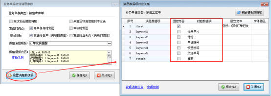 模板消息添加完成后,需要設(shè)置微信模板消息和軟件數(shù)據(jù)項的對應(yīng)。如下圖4所示: