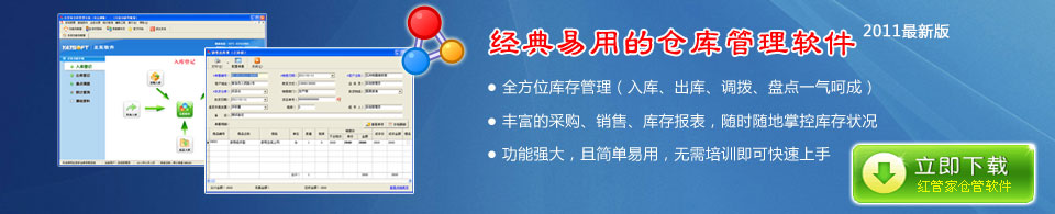 紅管家倉(cāng)庫(kù)管理系統(tǒng)是亞拓軟件開(kāi)發(fā)的專(zhuān)門(mén)針對(duì)工廠(chǎng)中的材料采購(gòu)入庫(kù)、生產(chǎn)發(fā)料領(lǐng)料,批發(fā)零售公司的商品采購(gòu)入庫(kù)、出庫(kù)記帳等業(yè)務(wù),而開(kāi)發(fā)的倉(cāng)庫(kù)及貨物管理軟件,系統(tǒng)主要包括采購(gòu)訂單、采購(gòu)入庫(kù)單、采購(gòu)?fù)素泦巍N(xiāo)售訂單、銷(xiāo)售出庫(kù)單、銷(xiāo)售退貨單、生產(chǎn)領(lǐng)料單、生產(chǎn)退料單、成品入庫(kù)單、倉(cāng)庫(kù)調(diào)撥單、盤(pán)點(diǎn)報(bào)盈單、盤(pán)點(diǎn)報(bào)損單等業(yè)務(wù)單據(jù)管理,提供了豐富的采購(gòu)、銷(xiāo)售、庫(kù)存報(bào)表,更多功能,請(qǐng)下載體驗(yàn)!&