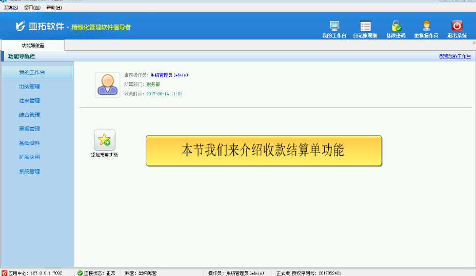 介紹信管飛出納記賬軟件收款結算單的主要功能和操作步驟。