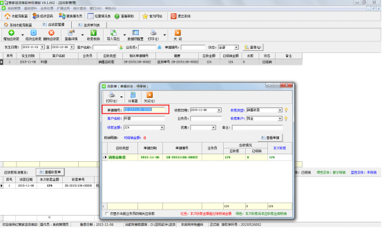 這時我們可以關閉此窗口,然后點擊下方的應收款結銷情況中的“查看收款單”按鈕,可以在收款單頁面看下收款單的單據編號并記錄下,或者是將收款單號復制一下,如圖二所示。
