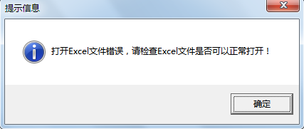 如果提示打開(kāi)Excel文件失敗,如下圖4所示。請(qǐng)使用Excel 2003/2007/2013等打開(kāi)這個(gè)Excel文件,按Ctrl+A全選數(shù)據(jù)復(fù)制一下,然后新建一個(gè)Excel文件,并將數(shù)據(jù)粘貼進(jìn)去,再選擇新建的Excel文件進(jìn)行導(dǎo)入試下。
