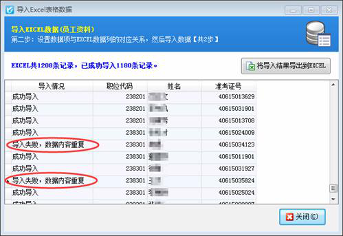 導(dǎo)入過(guò)程中軟件會(huì)實(shí)時(shí)顯示導(dǎo)入進(jìn)度,如果數(shù)據(jù)量比較大時(shí),導(dǎo)入進(jìn)度達(dá)到100%時(shí)軟件進(jìn)行數(shù)據(jù)提交會(huì)比較耗時(shí)。導(dǎo)入結(jié)束后,軟件會(huì)顯示導(dǎo)入的結(jié)果。沒(méi)有導(dǎo)入的記錄軟件會(huì)給出相應(yīng)的原因,如下圖6所示。