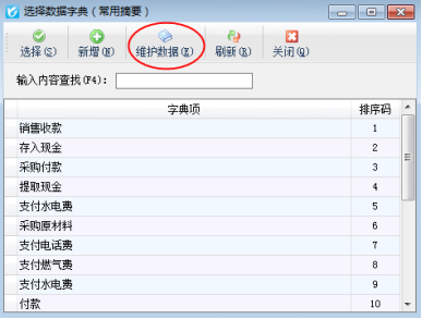 在新增憑證窗口,如圖2所示,點擊摘要后面的“...”選擇按鈕,系統彈出“選擇數據字典(常用摘要)”窗口,如圖3所示,然后點擊“維護數據”按鈕,系統彈出“常用摘要維護”窗口,如圖4所示,可以進行新增、刪除、導入、導出摘要信息等操作,最后點擊“保存”按鈕進行保存即可。