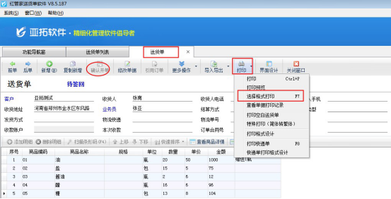 亞拓管理軟件紅管家送貨單軟件紅管家倉庫管理軟件等都支持一個單據設置多個打印模板,有時打印一張單據可能會遇到要使用兩種不同的打印模板,軟件只能默認其中一個為默認模板,大部分客戶選擇除默認模板外的打印模板需要重新進去打印格式設計界面進行選擇。軟件可以在打印時直接選擇格式進行打印。