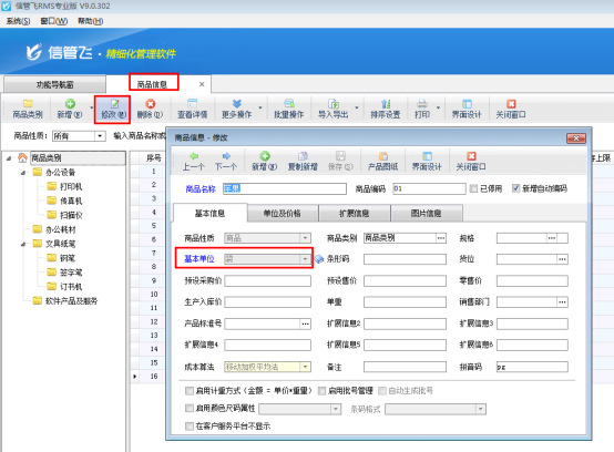 信管飛RMS(標準版和專業版)、信管飛送貨單軟件、信管飛倉庫管理軟件等都支持客戶自己維護商品信息,商品的基本單位可直接在維護商品信息的時候填寫好。在開單使用商品信息后,再對商品基本單位進行修改時,商品的基本單位是鎖定狀態,為了更加自定義商品單位,軟件支持修改已使用商品的基本單位。以信管飛RMS專業版為例,我們介紹一下如何修改已使用商品的基本單位。