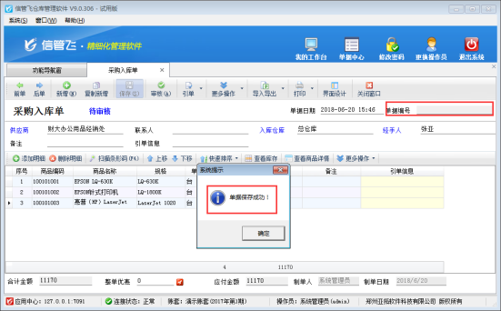 歡迎下載試用可以設置單據編號在保存或者審核時可以生成的管理軟件:信管飛倉庫管理軟件