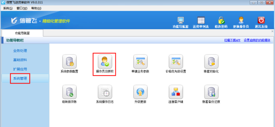 登錄軟件,在功能導(dǎo)航窗選擇“系統(tǒng)管理”—》“操作員及授權(quán)”,進入“操作員管理及授權(quán)”界面,如圖1、圖2所示。