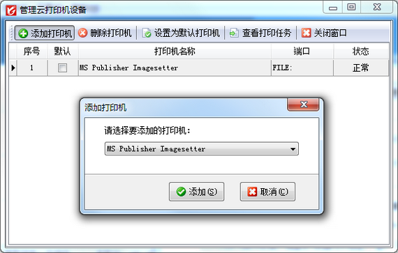 云打印機設備請在主機電腦軟件應用中心程序內,點擊“系統參數”->“基本參數”,勾選“啟用云打印(支持網絡遠程打印)”,然后點擊“管理云打印機設備”按鈕,打開“管理云打印機設備”窗口,添加云打印機即可(云打印機可從主機本地打印機中進行選擇),如下圖一、圖二所示。