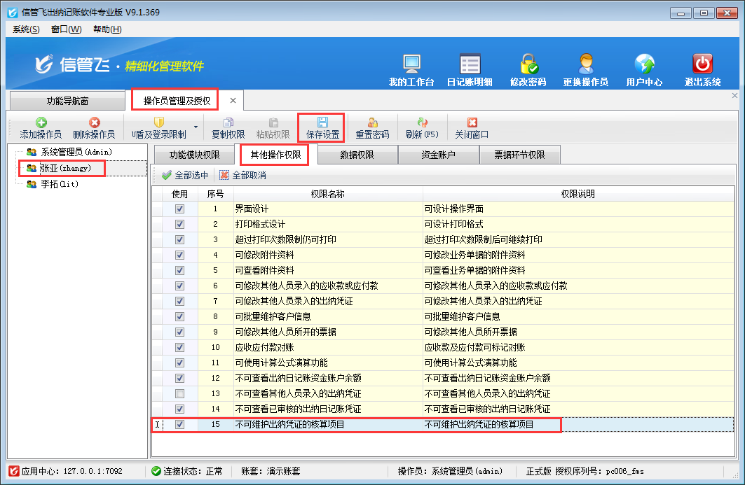 注意:設(shè)置操作員不可維護出納憑證的核算項目權(quán)限為V9.1.369版本增加的功能,如需要使用此功能,需升級到最新版。