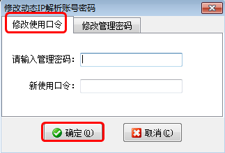 在修改密碼窗口,點擊“修改管理密碼”頁面,輸入當前密碼、新密碼、確認新密碼后,點擊“確定”按鈕,就可以修改動態IP解析服務的管理密碼。如下圖3所示: