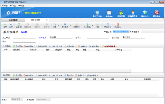 (2)當需要加工廠進行加工時,開“委外加工單”錄入加工任務,會根據生產模板自動算出需要的原材料明細。