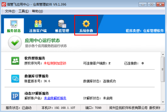 首先打開(kāi)信管飛倉(cāng)庫(kù)管理軟件應(yīng)用中心程序界面,如下圖1所示。