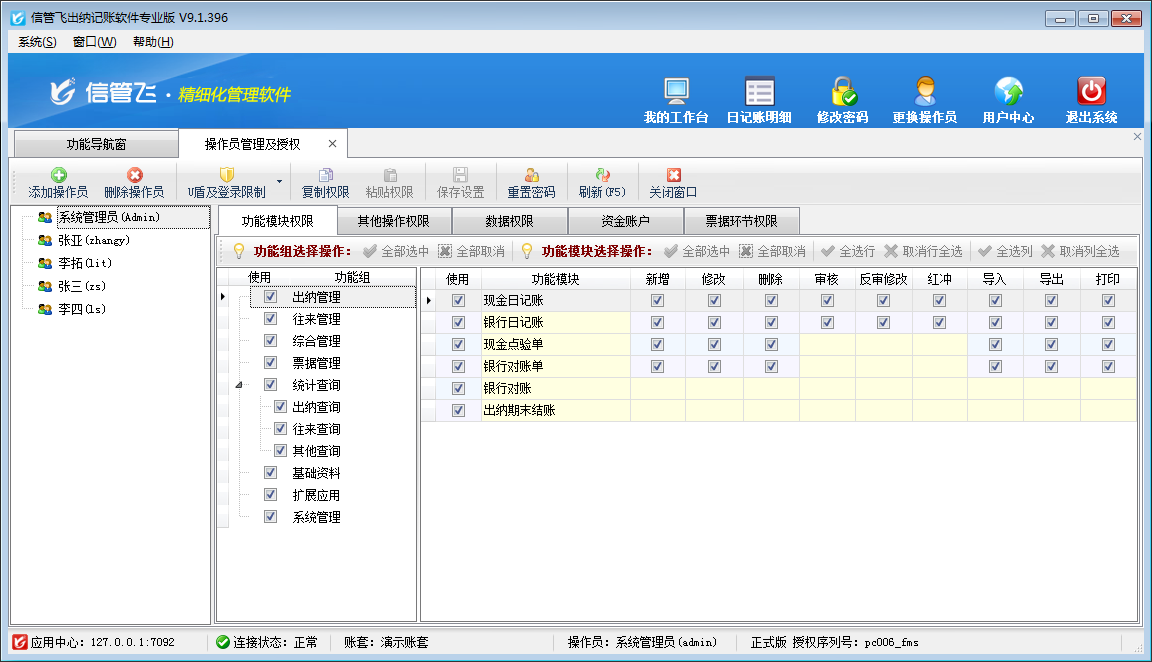 歡迎免費下載試用這款可設置多個操作員賬號登錄的出納記賬軟件:信管飛出納記賬軟件。