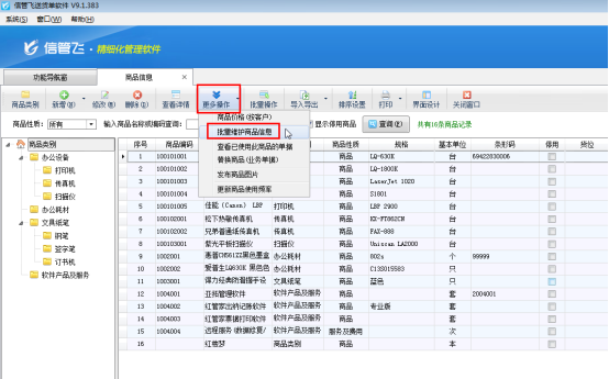 信管飛RMS信管飛倉庫管理軟件信管飛送貨單軟件都可以對(duì)商品信息進(jìn)行管理,如果有些商品開過了單據(jù),您以后不再使用該商品進(jìn)行開單了,可以把這些商品設(shè)置為停用狀態(tài)。已停用的商品無法被用于開單,選擇商品窗口可以隱藏已停用的商品。當(dāng)需要停用的商品比較多時(shí),一個(gè)一個(gè)進(jìn)行停用比較耗時(shí),如何批量停用商品呢?本篇文章以信管飛送貨單軟件為例詳細(xì)介紹一下如何批量停用商品。