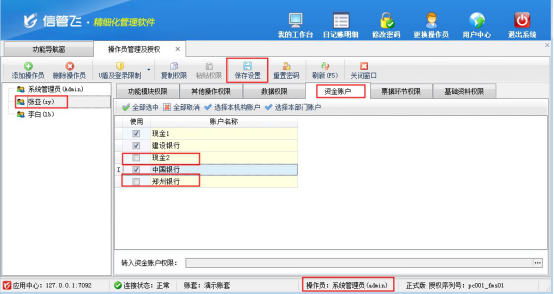 出納登記銀行和現(xiàn)金日記賬時,需要分多賬戶登記。為避免多名出納同時登記日記賬時出現(xiàn)重復登記現(xiàn)象,軟件支持設(shè)置多個操作員,以及設(shè)置操作員僅能查看到自己登記的資金賬戶。本文以“信管飛出納記賬軟件”為例,示范下如何設(shè)置操作員僅能查看部分資金賬戶?