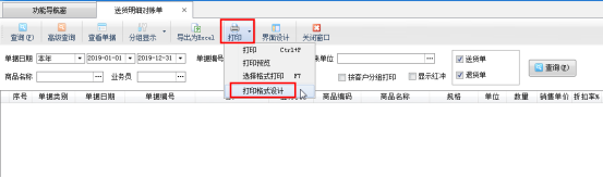 然后在工具欄點(diǎn)擊“打印”—》“打印格式設(shè)計(jì)”打開“送貨明細(xì)對(duì)賬單列表打印”窗口,如下圖所示: