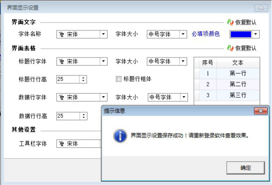 界面風格中可調(diào)整標題行行高和數(shù)據(jù)行行高,字體顯示大小也可以進行修改。修改后重新登錄軟件會變?yōu)樾薷暮蟮娘@示,下圖為修改后顯示: