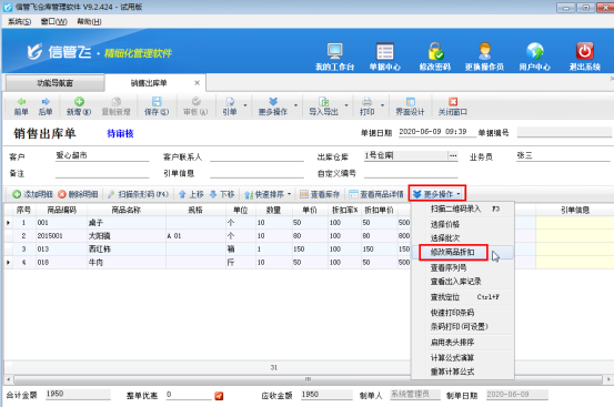 信管飛送貨單軟件、信管飛倉庫管理軟件、信管飛RMS開單時(shí),當(dāng)商品存在打折情況時(shí),支持錄入商品的折扣率。當(dāng)商品明細(xì)的內(nèi)容比較多時(shí),為了快速開單,提高效率,可以批量更新單據(jù)明細(xì)中的折扣率。下面我們以信管飛倉庫管理軟件為例詳細(xì)介紹下如何批量修改商品折扣率。