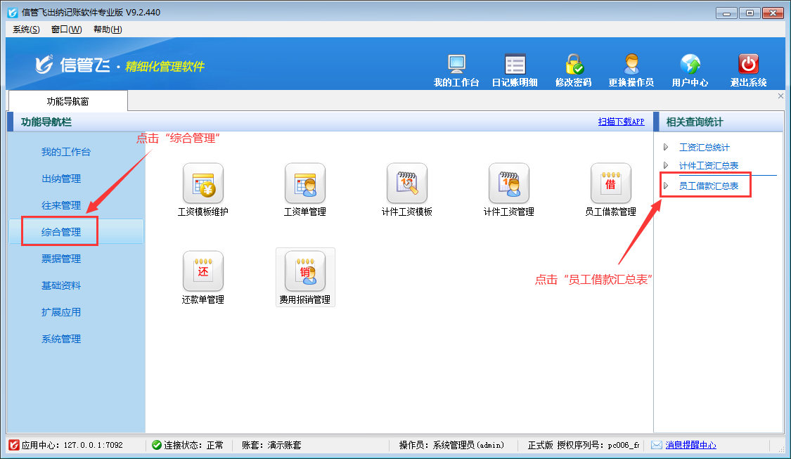 歡迎免費下載試用這款可以管理員工借款記賬軟件信管飛出納記賬軟件