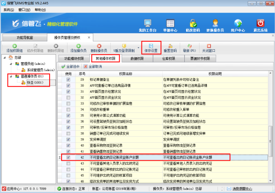 進銷存軟件內如何設置操作員不可查看資金賬戶余額?