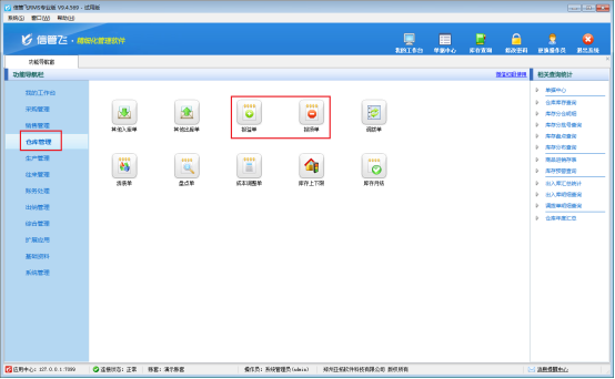參數(shù)設置完成后,退出重新登錄軟件,此時倉庫管理處報溢報損單已顯示。