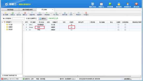 將員工設置為操作員之后,此員工即可登錄軟件,如下圖所示。